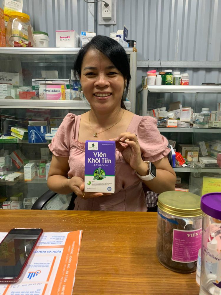 Chồng tôi bị đầy hơi, đau bụng, viêm loét dạ dày. Tôi đã mua Viên khôi tím Bavieco và nhắc nhở chồng uống thường xuyên. Hiện tại tình trạng đầy hơi, đau bụng và viêm loét dạ dày của chồng tôi đã hết.